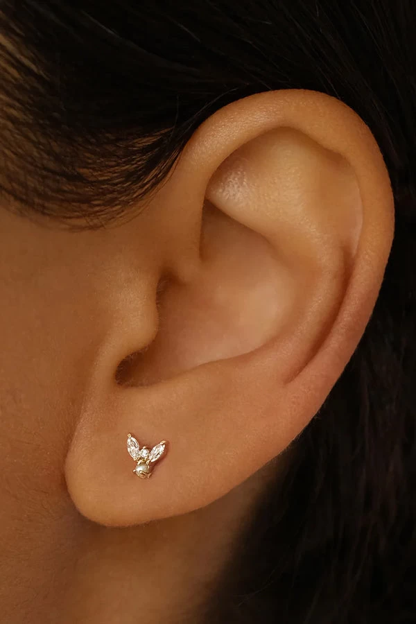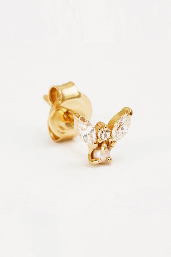 Let your spirit soar with By Charlotte’s. 14k Gold Angel Stud Earring. Featuring nature freshwater pearls and marquise cut CZ crystals, this enchanting piece draws inspiration from angel wings. Wear this stud earring in the lobe as a pair as ultimate symbol of freedom. Â