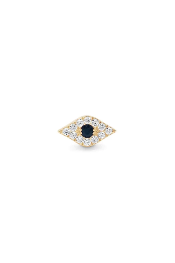By Charlotte’s.solid 14k Gold Evil Eye Earring features one of the most ancient and powerful symbols of protection against evil. Set with sparkling white cubic zirconia crystals and a dark blue Sapphire for faith, truth and hope. Wear our Evil Eye Earring to ward off negative energies on your path to self discovery.