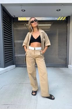 Alphonse Exposed Waistband Pant in Safari Brown.