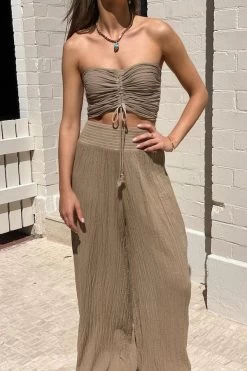 This effortless maxi features a flattering frill one-shoulder neckline and shirred bust blooming with an a line skirt with a side split. Perfect for sea view lunches or balmy evening affairs.