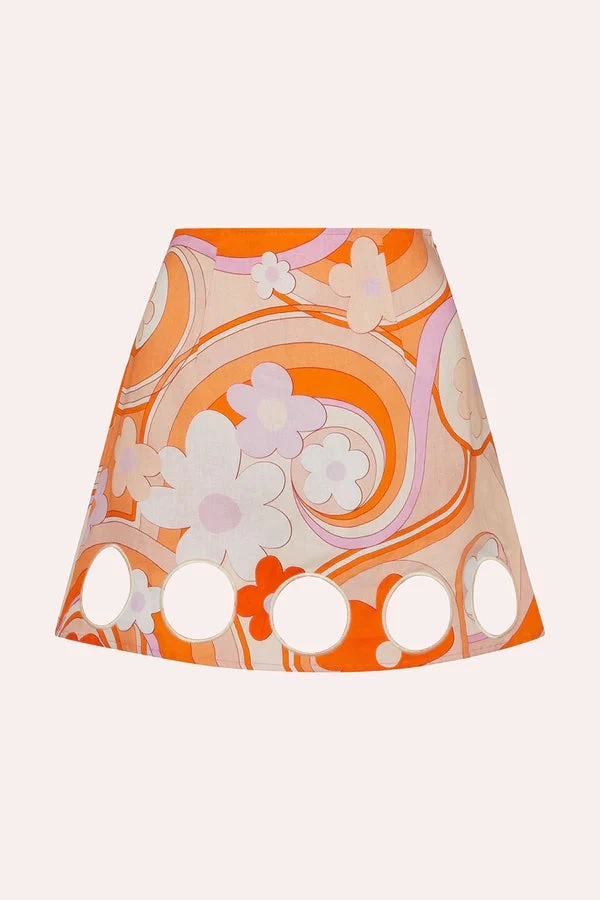 With unique circular cut outs and white detailing, this statement piece by Cin Cin SWIM, is a head turner. Step into the Flower Powered sixties with our tangerine and lilac hued Bloom print.