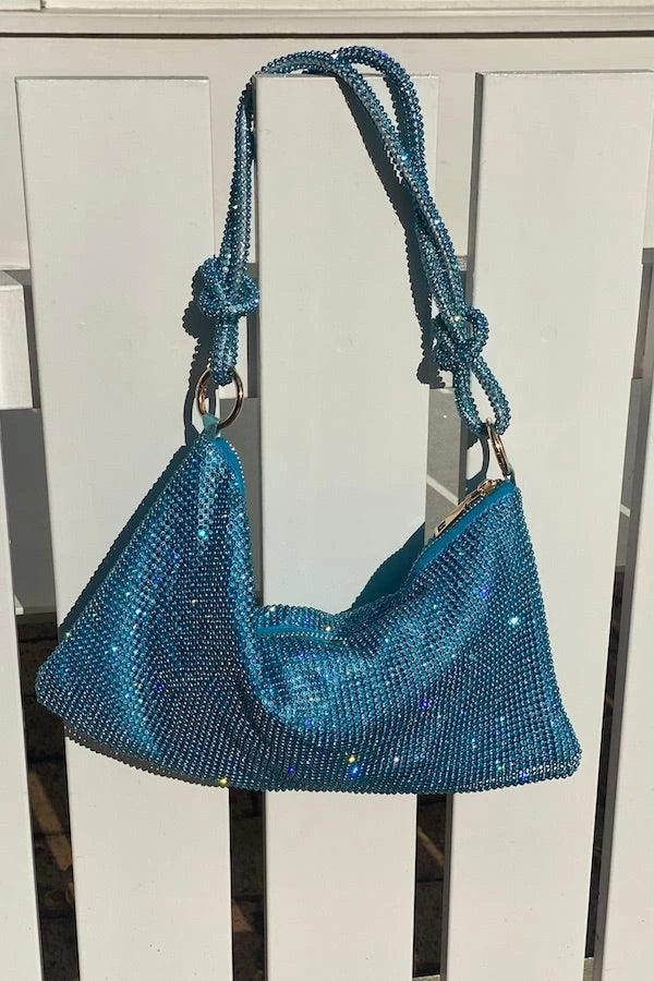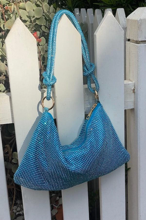 The By Girls with Gems Diamonte Mesh Bag is a must-have piece this season. It’s perfectly sized to fit your phone, card holder, lipstick and keys.Â