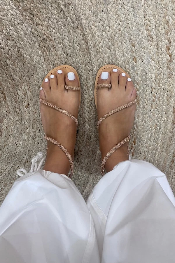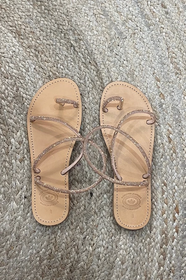 The perfect slide to dress up any outfit by Girls With Gems. Handmade leather sandals from Athens, Greece.
