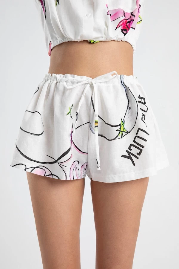 Drawstring Relaxed Shorts Cowboi Print