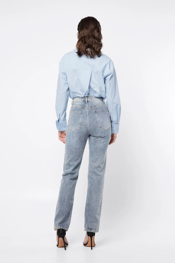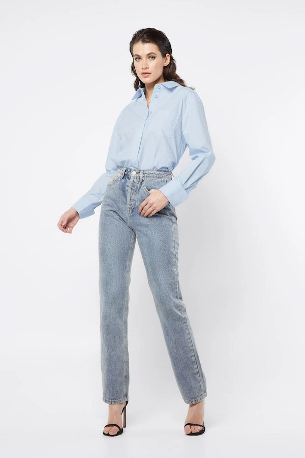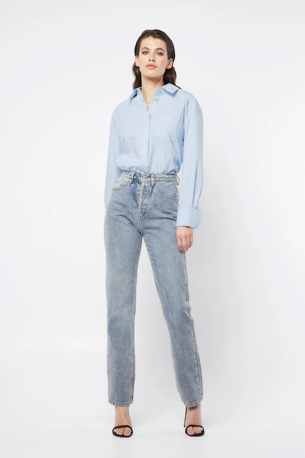 Versatile and essential, the Ego Jean by Mossman features a beautiful blue wash. Highlighted by its high waisted silhouette, button fly closures and straight leg fit, this denim jean will take your through all seasons in style. Pair it with our Control Shirt for a sophisticated approach.