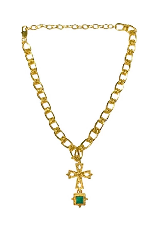 Make a scene with the Evita Necklace! She’s romantic glamour at its finest and will have you feeing your most fabulous and luxe self when you wear her. A unique golden chain with textured detailing holds our iconic baroque style cross that is a signature motif of the Primadonna Collection.