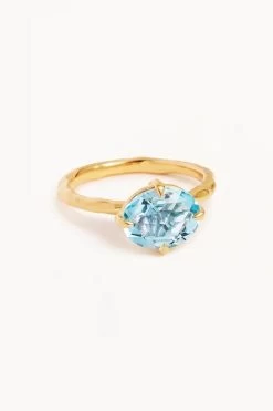 Channel your inner wisdom when you wear our Clarity Ring. A vibrant natural rose-cut blue topaz shines through a pointed claw setting, bringing clarity to your mind and encouraging clear communication. The elegance of this ring is awoken in the organic undulating design of the gold band.