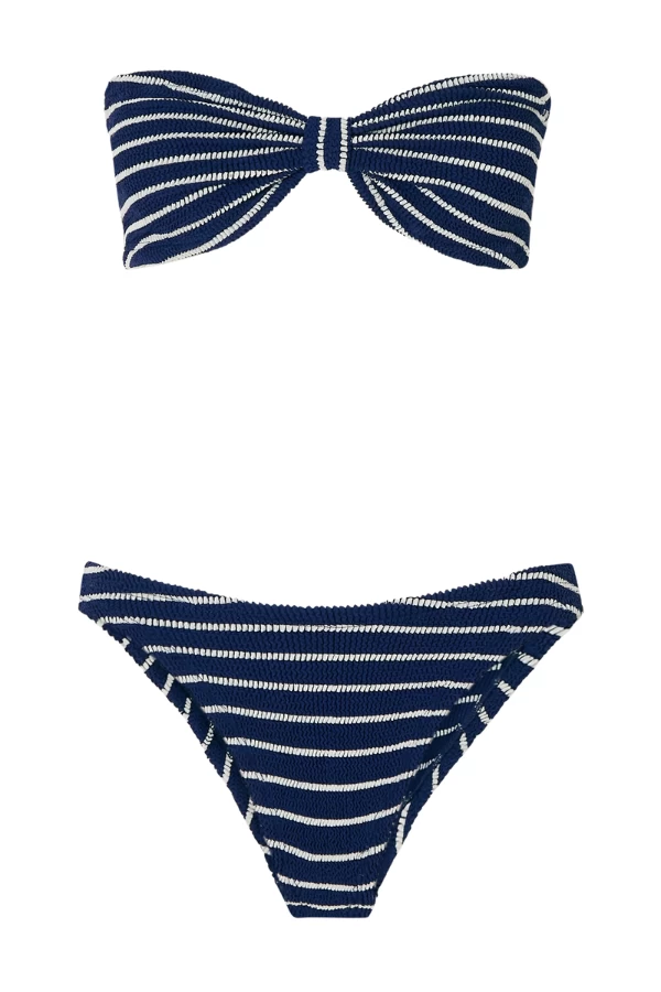 One of our most popular styles, the Hunza G Jean is truly for everyone. Moderate adjustable coverage on both top and bottom provides wearability for most. Bow-style bandeau top and classic bottoms, both in our signature crinkle. Perfect for mixing with other crinkle bikinis, or worn alone in all its glory.