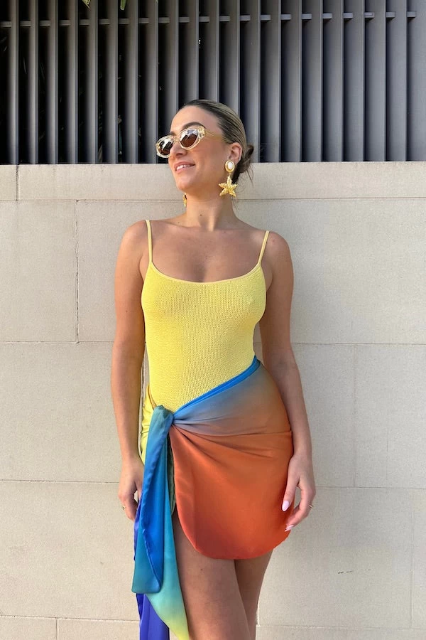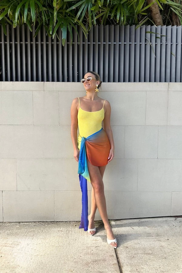 Mini ombre pareo. A silk like wrap skirt that can be worn as a beach coverup.
