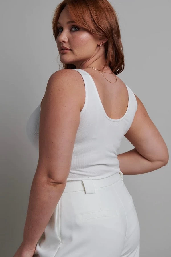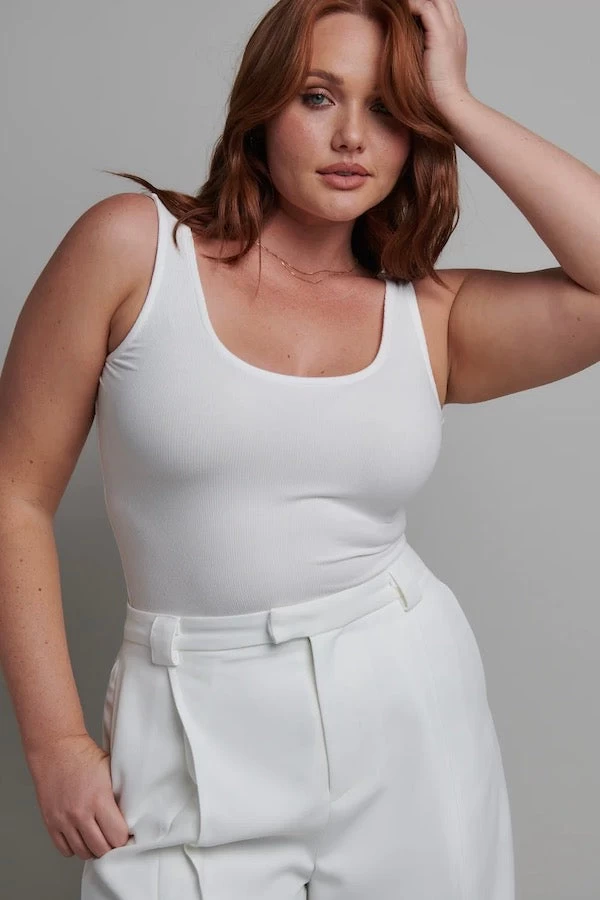 An effortless and easy-to-wear wardrobe staple by Bayse. Featuring a femme scoop neckline. Ribbed fabric; stretch. Sleeveless design, scooped neckline. Tank styles straps, fitted silhouette. Snap fastener at crotch.