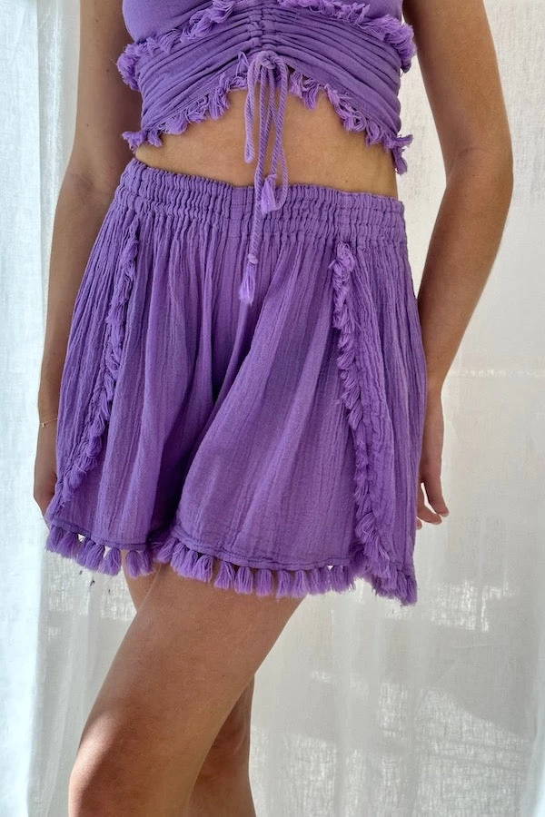 Show off your style in our updated Paros Shorts with the new Moira Shorts Lilac! With a timeless a-line fit you will be living in them all summer long! You can pair them back with the matching Moira Top.