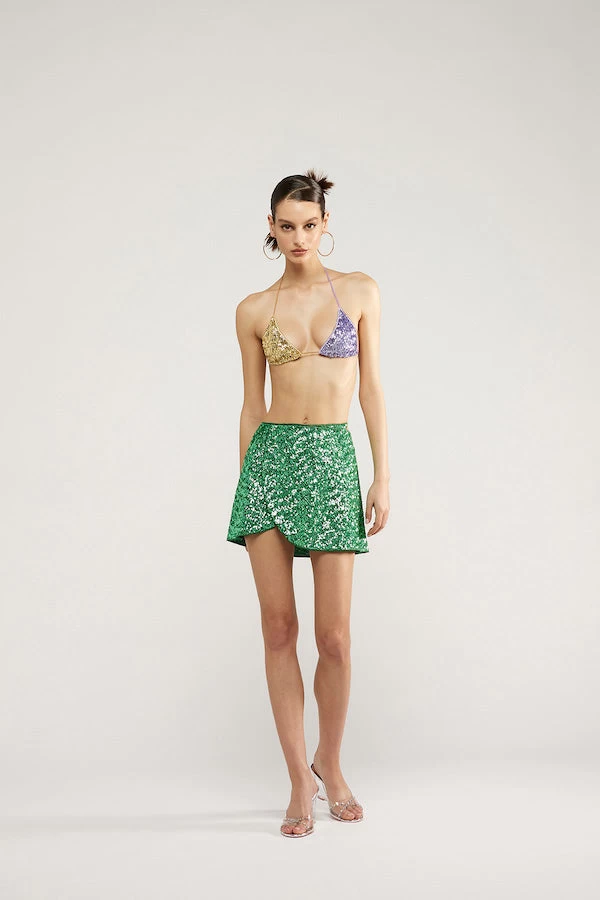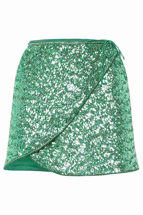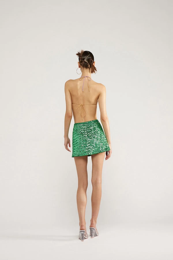 Oséree Paillettes Mini Skirt Emerald