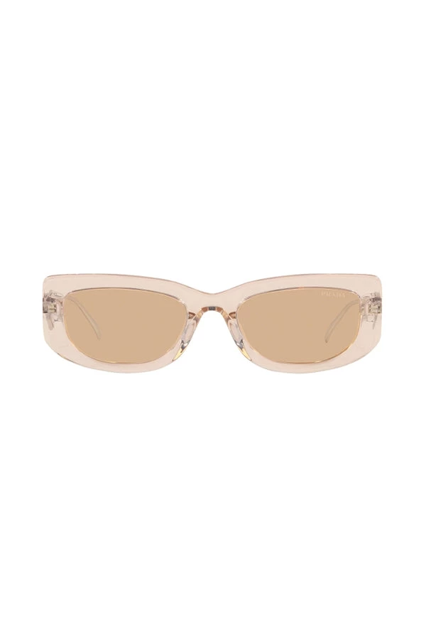 The Prada PR14YS sunglasses are a fashionable rectangular shape that will add some luxury to your finished look. This crystal beige style features both a metal and acetate construction making them stand out from all angles. The metal temples feature the brand Prada Symbole triangle trademark which is the hero of this frame. This rectangular silhouette is a trend-setting style and will be an ideal accessory to have in your wardrobe.