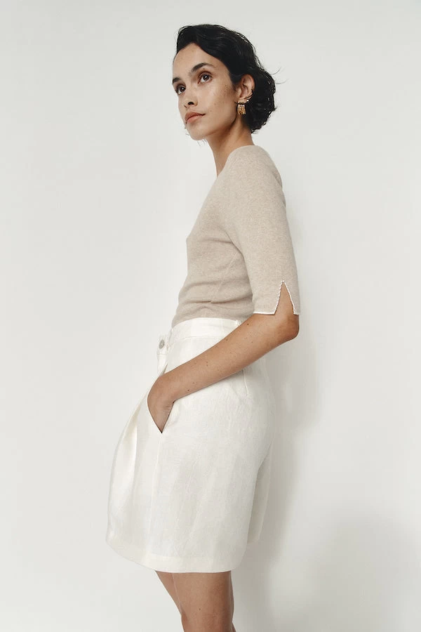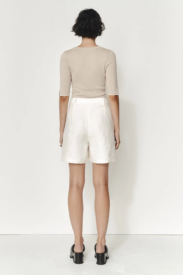 The Ramona Short is built upon our adored Willow Pant and this version are crafted in 100% linen. They feature a relaxed tailored fit, sitting on a fixed waistband and secured with a zip and shell button closure. These shorts feature two pleats on either side of the zip as well as pockets and belt loops.