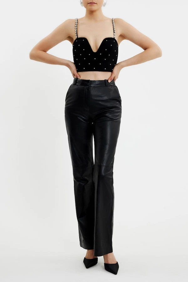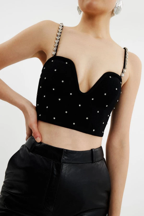 Rebecca Vallance is designed with a plunging sweetheart neckline to enhance the décolletage. The sophistication of this top is enhanced by the carefully hand-embellished diamantes, the straps with heart-shaped diamante trim and subtle back zip fastening. Style with everything from high-waisted leather pants to tailored black trousers.