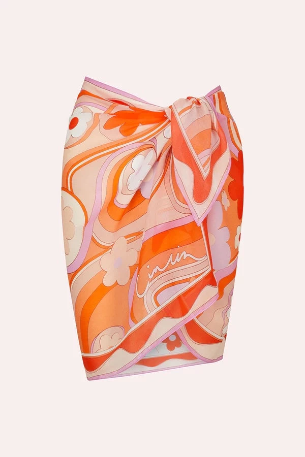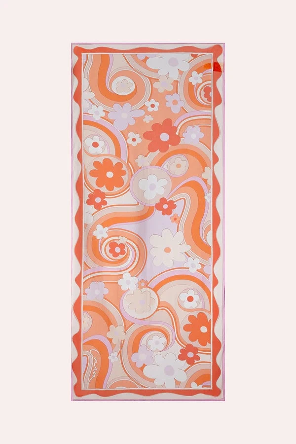 Style your scarf as a sarong with your swimwear look for added versatility and ‘wow’ factor. Step into the Flower Powered sixties with our tangerine and lilac hued Bloom print.