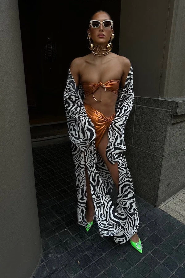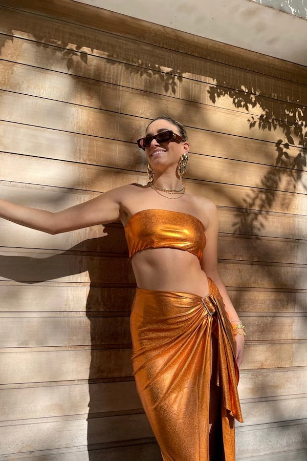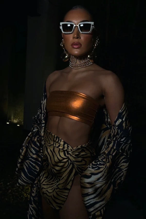 The Soleil bandeau by Khirzad Femme is a flirty yet elegant design that is sure to make heads turn. It has been designed to be super cropped and nice and fitted around your bust for support as its optimum not to wear a bra with this top.The Soleil bandeau has a visible luxurious zip closure on the black for support and to make this piece more elevated and of course to make the getting on and getting off process much easier.