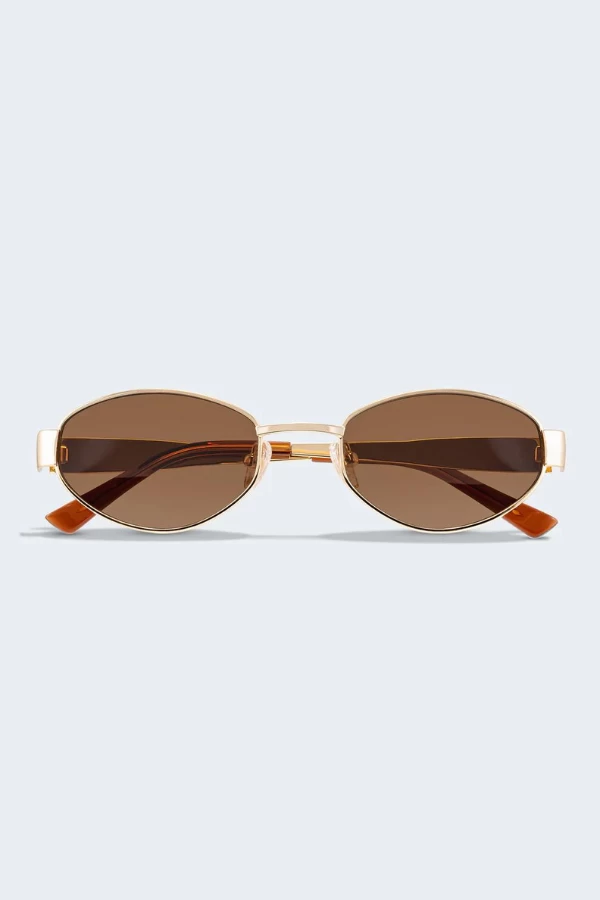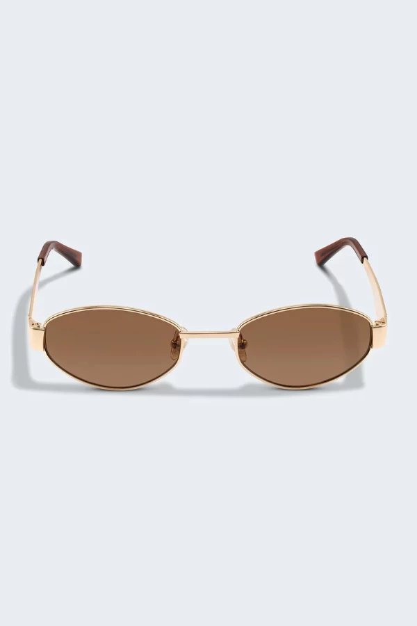 The Boston Gold sunglasses provide the ultimate chic look with a gold lense and sleek hardware. This lightweight pair is perfect for all occasions, adding sophistication to any outfit.