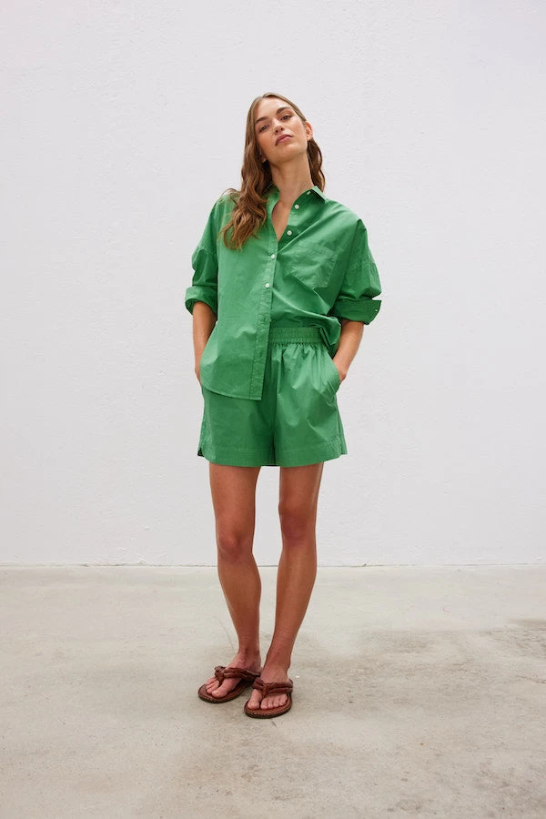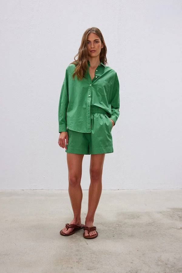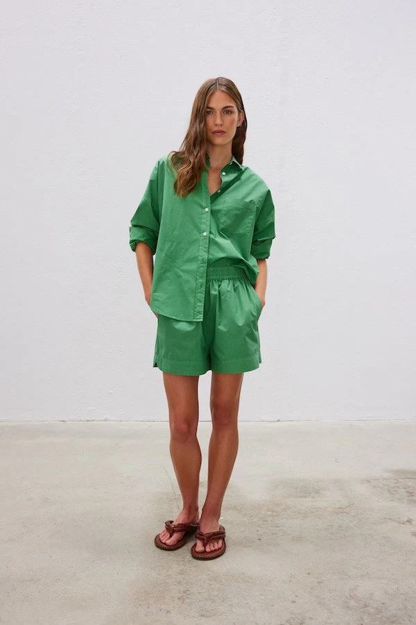 The LMND perfect holiday and off duty combo. The Chiara Shorts are made from 100% cotton-poplin with a comfortable elasticated waistband. They’re designed with loose legs and side slip pockets. Pair them with a tee or create a set with the matching Chiara shirt.