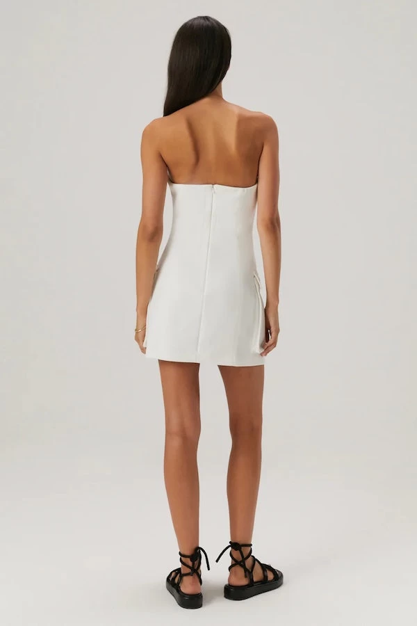 Meet Valencia, you next strapless party dress. Curated in signature MISHA bonded crepe, detailed with pockets at the hip, this body-con mini dress contours the body through boning features and princess seams. Pair Valencia back with your most-loved strappy stilettos and feature earrings to maximise on playfullness.
