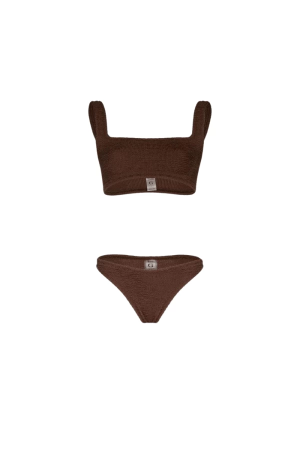 Our cult Hunza G Xandra Bikini. Simply cool vibe with a touch of sport. Ideal for medium to larger chests, this easy bikini allows for those wanting a smaller top with great support. Famously worn by Kim Kardashian!